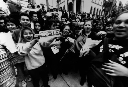 I was on the verge of 12 years old when Proposition 187 passed, but I knew enough to know that I had the power to do something so I didn’t hesitate when I walked out of class. Unfortunately for me, we went to a middle school that had gates that enclosed us in the school and while some of my fellow young classmates made a mad sprint and dodged administration and the closing gates, I didn’t make it out. I remember how my friends and I ran to one gate only to find it locked and ran to another in the front of the school only to find that they had just closed it. We watched for what seemed like forever, but in reality was only a few minutes and cheered on fellow classmates that made it out the gates and were running towards the street. As they sprinted across the large vacant dirt lot and dodged a few more administrators and security guards, my eyes were fixated on what it was they were running towards. In the distance there was a group of high school students from Rubidoux marching and chanting as they made their way east down Mission Boulevard towards downtown Riverside to join what I would learn many years later was a larger rally with other local area high schools.